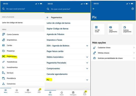 Na tentativa de esclarecer o funcionamento do mecanismo nos sistemas das instituições financeiras, as telas para uso do PIX serão parecidas com as abaixo colacionadas (sistema disponibilizado pelo Banco do Brasil):